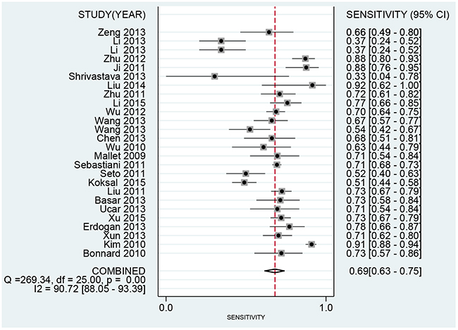 Figure 2: Forest plot of pooled sensitivity of FIB-4 for liver fibrosis in patients with hepatitis B.