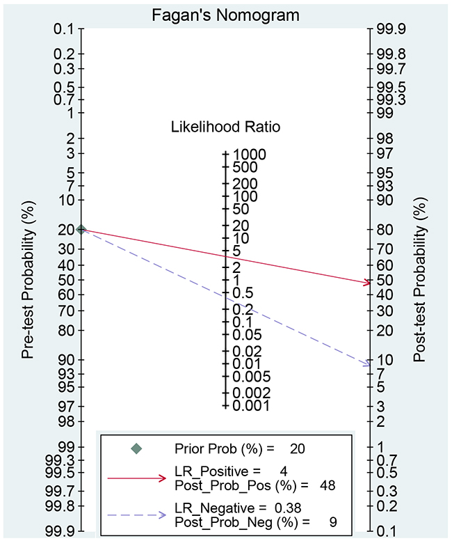 Figure 5: Fagan diagram evaluating the overall diagnostic value of FIB-4 for liver fibrosis in patients with hepatitis B.