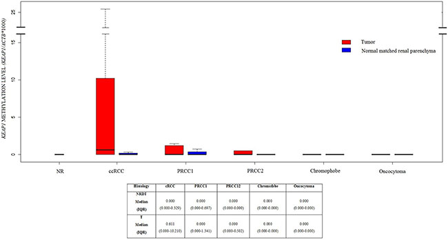 This could be explained taking into account the heterogeneity features of renal cancer and more importantly by an existing alternative epigenetic mechanism to regulate Keap1-Nrf2 signalling. KEAP1 promoter epigenetic silencing as just reported in cancers as well as in the other diseases with a clear association with tumors having a low incidence of somatic mutations [22, 24].