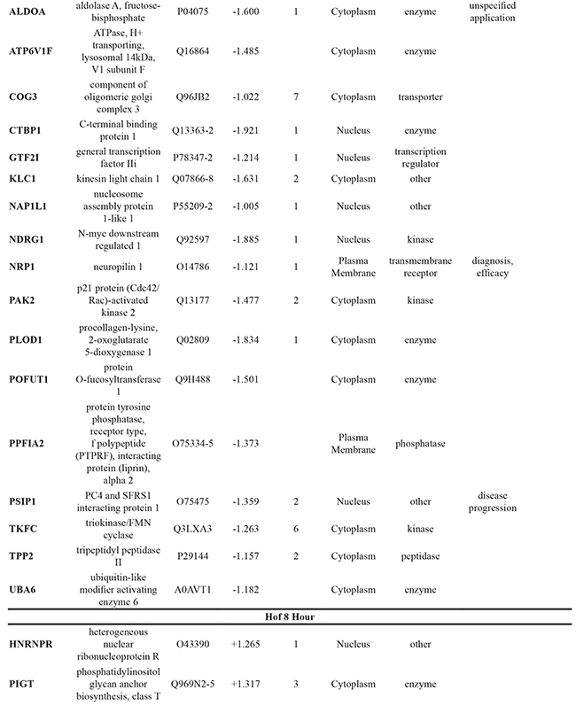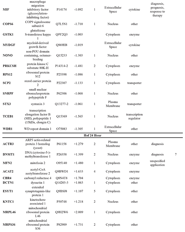 Table 1: Significant changes in protein expression occurring under hypoxic conditions