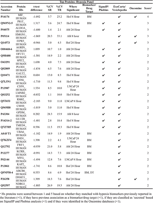 Table 5: Top Scoring Proteins in Hypoxia Panel