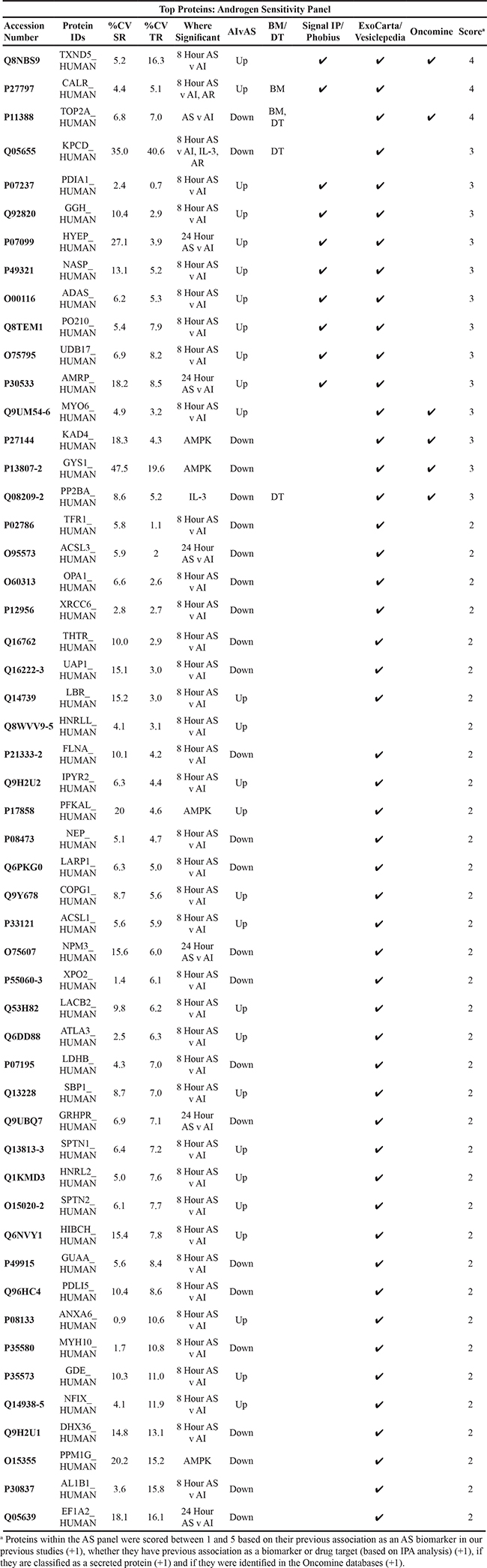 Table 6: Top Scoring Proteins in Androgen Sensitivity Panel