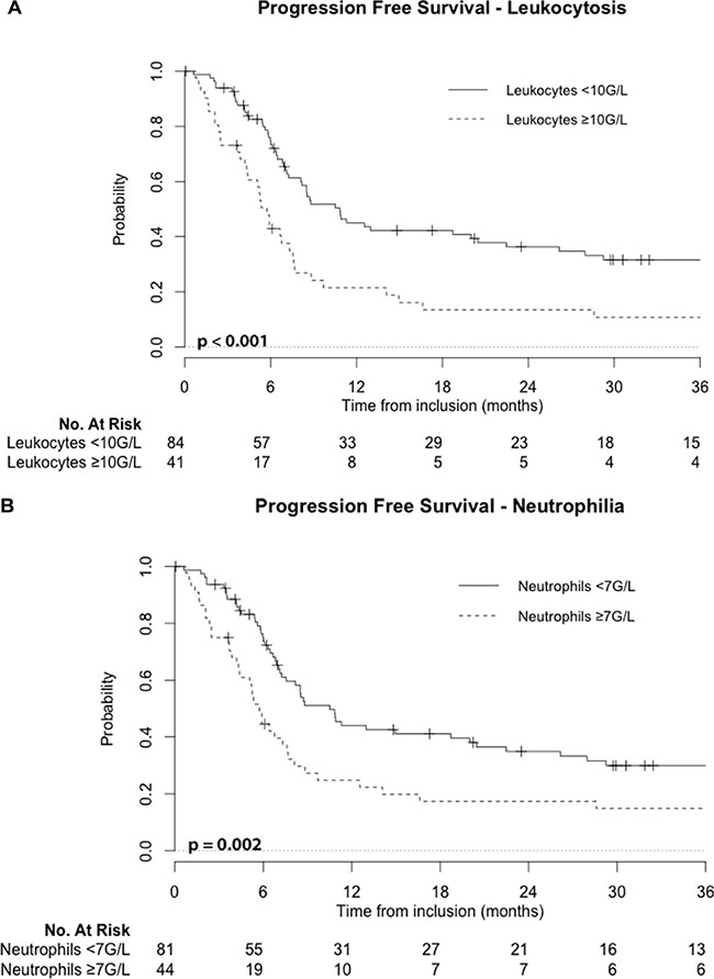 Biological pathways involved in inflammation and immunity play a critical role in tumorigenesis, and conversely cancer promotes inflammation [4]. Tumor-related leukocytosis and particularly neutrophilia are a paraneoplastic syndrome reported in various malignant advanced tumor types [5]. The expression of cancer cell-derived granulocyte-colony stimulating factor (G-CSF) may enhance neutrophilia through an aberrant paracrine activity and intratumoral chemotaxis of myeloid-derived suppressor cells [6].