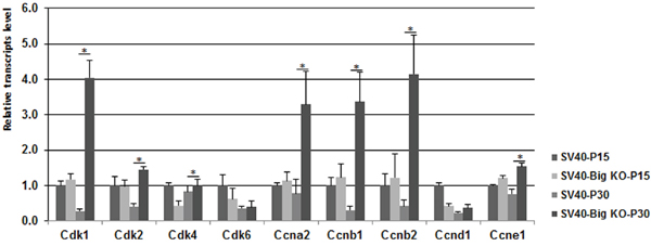 The regulation of cyclins and cyclin-dependent kinases in SV40-TAg/Bigh3-/- mice