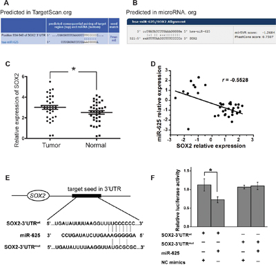 miR-625 targets the 3′-UTR of SOX2