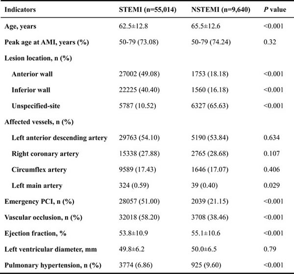 Table 1: Characteristics of patients with STEMI and NSTEMI.