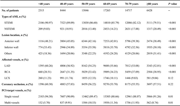 Table 2: Characteristics of patients with AMI grouped by age.