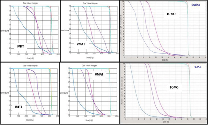 In conclusion, our results demonstrated neither the prone nor the supine position yields superior values of OAR sparing. The TOMO technique was the best technique in the current study. Although TOMO, IMRT and VMAT achieved comparable target coverages, TOMO was superior in OAR sparing, except in the small bowel. Moreover, TOMO was superior to IMRT and VMAT in most clinically evaluated endpoints.