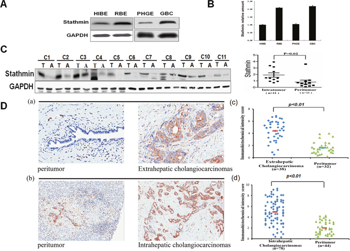 High Stathmin expression was validated in cholangiocarcinoma specim ensusing the Western blot and immunohistochemistry method