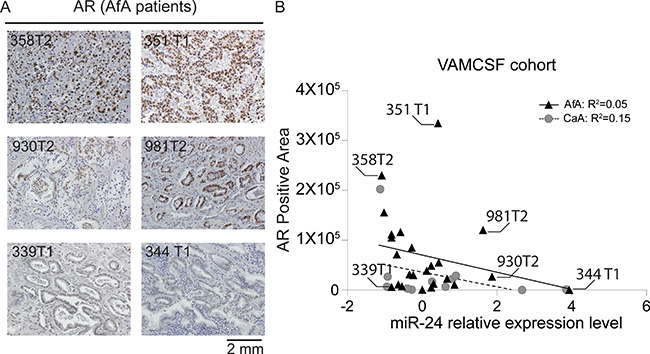 AR expression levels reciprocally associated with miR-24 expression in AfA PCa tissues