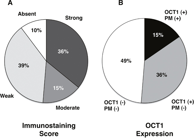 Relationship between treatment response and OCT1 abundance/localization