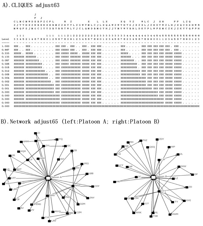 A total of 134 drug abstainers were strictly separated into two platoons; the 75 abstainers in platoon A resided on the second floor, and the other 59 abstainers in platoon B resided on the third floor. Each floor had its own workshop. The assigned exercise, work-break and dining areas were also separate. The mealtime of platoon A was 5 minutes earlier than that of platoon B. Therefore, there was no close contact between the two platoons. The resulting cliques also suggested that the epidemic situation may have contained two or more networks. Figure 1 demonstrates the cliques and structure of the networks. Figures 2 and 3 shows the schematic diagrams of the possible propagation chain of the two platoons.