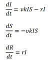 Parameter I represented the number of infected individuals at time t, parameter S represented the number of individuals susceptible to infection at time t, and parameter R represented the number of recovered individuals at time t. Factors v and r represented the “infection coefficient” and “recovery rate”, respectively, factors v and r were both in accord with a normal distribution. Factor k represented the “contact coefficient”, which was distributed as k ~ beta (2, 7) at the beginning of the influenza outbreak, as k ~ beta (0.5, 10) during the period of quarantine, and as k ~ beta (0.2, 15) when all patients and susceptible individuals had received oseltamivir. The dynamic equations of our retrospective study are