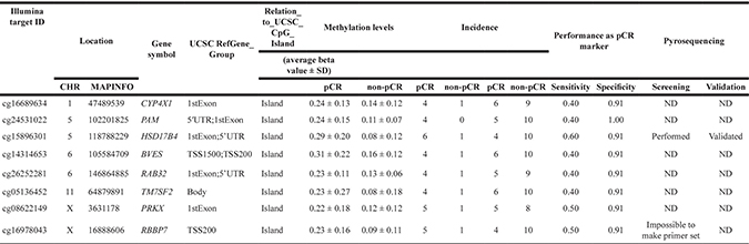 Genome-wide screening of regions with methylation statuses associated with pCR