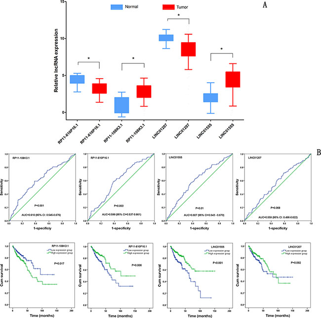 The findings of the current study may have substantial clinical significance or implications; however, some limitations should be considered. First, the mean time of follow-up was 29.375 months for COAD and 26.965 months for READ patients, and a study including a longer follow-up time is warranted to validate our findings in the future. Second, the data from TCGA were based on the RNA-seq technique; other experimental methods are needed to verify the current finding. Third, the roles of LINC01555, RP11-610P16.1, RP11-108K3.1, and LINC01207 in colorectal cancer are unknown; in vitro and in vivo experiments are expected to answer this question.
