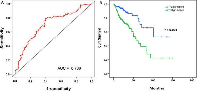 COAD and READ patients were divided into two groups: high-score and low-score, with the cut-off of the individual inflection point of the prognostic risk score [66]. Univariate Cox proportional hazards regression analyses were further conducted to investigate the effects of various clinical characteristics and the risk score on the OS of COAD and READ patients. Each predictor identified via the univariate analysis was further evaluated by a multivariate Cox proportional hazards regression analysis to determine whether the lncRNA prognostic model was independent of other clinical variables, adjusting for age, tumor stage, grade, surgical debulking status, and risk scores. Hazard ratio (HR) and 95% confidence intervals (CIs) were assessed. The time-dependent receiver operating characteristic (ROC) curve analysis within 5 years as the defining point was also performed using the R package “survivalROC”, to evaluate the predictive accuracy of the prognostic model for time-dependent disease outcomes [67]. Kaplan-Meier survival curves were used to estimate the OS time for COAD and READ patients with predicted high- or low-risk scores, and the survival differences between the high-risk group and low-risk group were assessed by a two-sided log-rank test using SPSS 22.0 software (SPSS Inc., Chicago, IL, USA) [68].