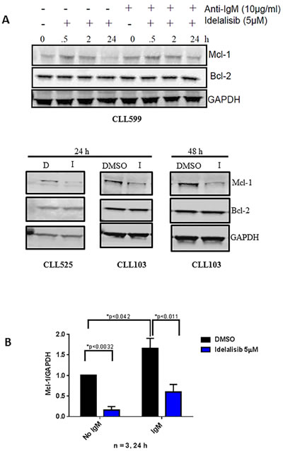 Idelalisib treatment decreases Mcl-1 but not Bcl-2 protein levels in CLL cells