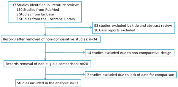 According to the Cochrane Handbook recommendations, a systematic review of published literature was performed [26]. No ethicissues get involved in this dissertation. A systematic dissertation was conducted using Medline, Embase, Pubmed, CNKI and all relevant studies has been identified by the Cochrane Library. The following key words were used: “comparative studies”, “laparoscopic cryoablation”, “percutaneous cryoablation”, “laparoscopic renal cryoablation”, “percutaneous renal cryoablation”, “cryoablation”, and “small renal masses”.