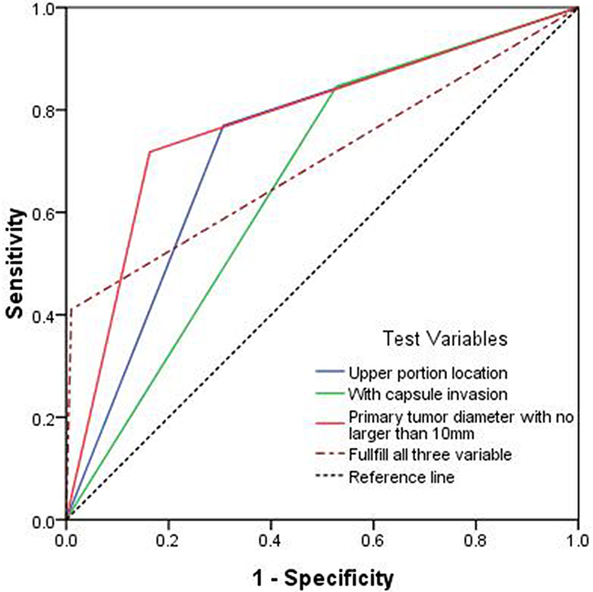 Capsule invasion; Primary tumor size≤10 mm; upper portion location |