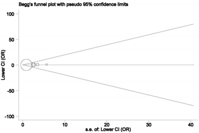 We omitted individual studies one at a time and re-calculated overall estimates to detect the impact of each included study on pooled results. Since pooled ORs were not substantially altered, our results were statistically stable and credible.
