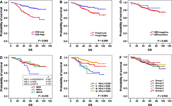 In summary, this is the first study to classify a large homogeneous cohort of stage II and III GCs into 4 immune types by co-assessment of 2 key components of TME, PD-L1 expression and CD8+ T cell infiltration. We found that EBV+ and MSI-H GCs are distinct subtypes that are tightly associated with TMIT I (PD-L1+/CD8High), and OS within the CD8High group differs according to PD-L1 expression. Therefore, we conclude that co-assessment of PD-L1 and CD8+ TILs is clinically relevant, has a possible prognostic role, and warrants further investigation as a predictive marker for immune checkpoint blockade.