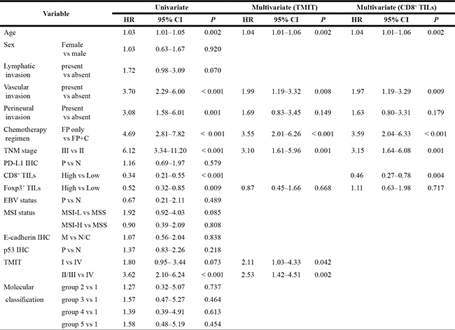 Considering the importance of both PD-L1 expression and CD8+ TILs in defining the tumor immune microenvironment [11–13], we co-assessed PD-L1 expression by immunohistochemistry and the density of CD8+ TILs in GC tissue samples and applied the scheme for TMIT classification based on PD-L1 expression/CD8 status. The purpose of this study was to (i) determine the association between TMIT and clinicopathologic features, especially prognostic significance, in stage II and III GCs, as well as the molecular subtypes of GCs, specifically EBV and MSI status, (ii) validate the findings by analysis of publicly available genomic datasets, and (iii) suggest potential biomarkers for better patient selection for immune checkpoint inhibitor therapy.