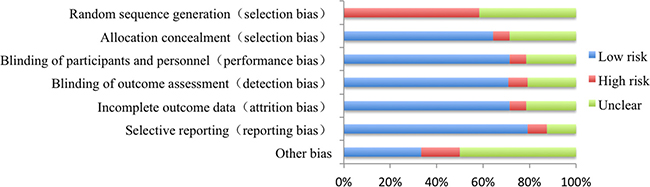 The details of the quality evaluation of enrolled publications were shown in Figure 2. There were no randomized controlled trials involved in EGFR status on the efficacy of icotinib in NSCLC patients harboring different EGFR mutation status. All studies were cohort trials and retrospective studies. Therefore the risk of bias was high regarding adequate sequence generation and blinding. But other methodological issues present relatively little risk.