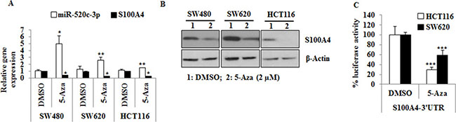 5-Azacytidine treatment restores miR-520c-3p and inhibits the expression of S100A4