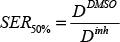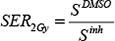 where SDMSO is the surviving fraction 2Gy at in the presence of DMSO and Sinh is the survival fraction at the same dose in the presence of inhibitor. The dose of 2Gy is commonly used in clinical exposures. SER50% indicates the dose required to achieve the same effect (i.e. 50% survival) in the presence of the radiosensitizer. It is calculated by: