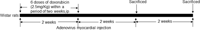 Doxorubicin is a commonly used chemotherapeutic agent for the treatment of solid and haematologic tumors. However, its cardiotoxic side effects and the development of severe congestive heart failure limit the application of this potent chemotherapeutic agent [1, 2]. The mechanisms of doxorubicin-induced cardiomyopathy remain not fully elucidated. Pathologically, doxorubicin-induced cardiomyopathy was associated with heightened oxidative stress status, apoptosis of cardiac cells, inflammatory response, myocardial fibrosis, metabolism abnormality, DNA damage and mitochondrial damage [3–7]. Several agents including anti-oxidants, angiotensin-converting enzyme inhibitors (ACEI), angiotensin receptor antagonists (ARB) and dexrazoxan have been employed for the attenuation of doxorubicin-induced cardiomyopathic damage [8, 9]. Unfortunately, all of these agents have not yet gained effective enough evidence to justify a routine use. Hence, the search for a safe and effective therapeutic method of preventing doxorubicin-induced cardiomyopathy remains an important issue in both cardiology and oncology.