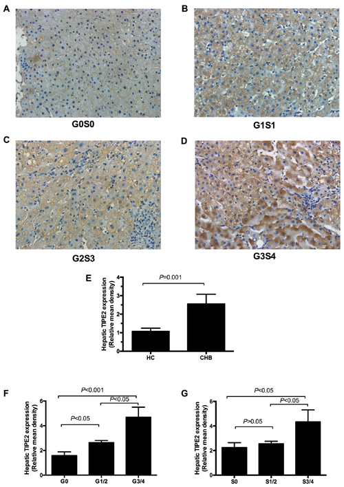 Consistent with the notion that TIPE2 is a negative regulator for immune homeostasis, TIPE2 is a cytoplasmic protein preferentially in lymphoid tissues, especially highly in monocytes and T cells [33-35]. However, human TIPE2 was also expressed in a wide variety of non-hematopoietic cell types, including hepatocytes [35]. In this present study, we demonstrated that TIPE2 protein was mainly distributed in hepatocytes plasma in CHB patients. The expression of human TIPE2 in hepatocyte suggested that TIPE2 may be involved in maintaining immune privilege liking immune negative regulators [35]. We also reported that intrahepatic TIPE2 protein in inflammation G3/4 and fibrosis S3/4 was significantly increased compared to that of inflammation G3/4 and fibrosis S1/2. It could be explained by the fact that inflammation mainly involves in local hepatocytes and TIPE2 might participate in this progression.