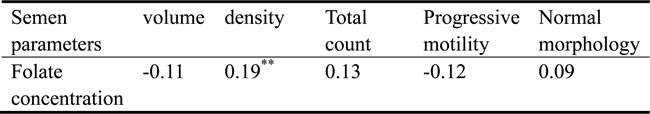 Table 2: Correlation of folate in seminal plasma and semen parameters of 198 participants #