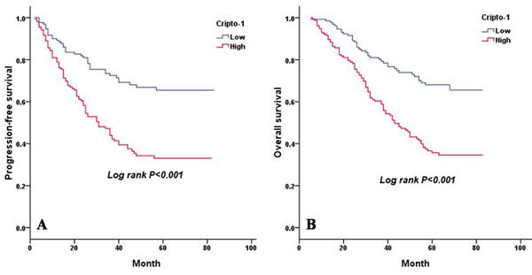 Our study does have several potential limitations. First, our study is a retrospective study, and all data are from a single institution. Therefore, the selection bias cannot be fully excluded. Second, the number of patients with advanced LAC was relatively small, and thus, the prognostic value of cripto-1 in patients with advanced disease requires a larger study. In addition, all patients enrolled in the present study are Chinese, and we do not know if these findings are generalizable worldwide. Therefore, further studies are required to confirm the results of this study.