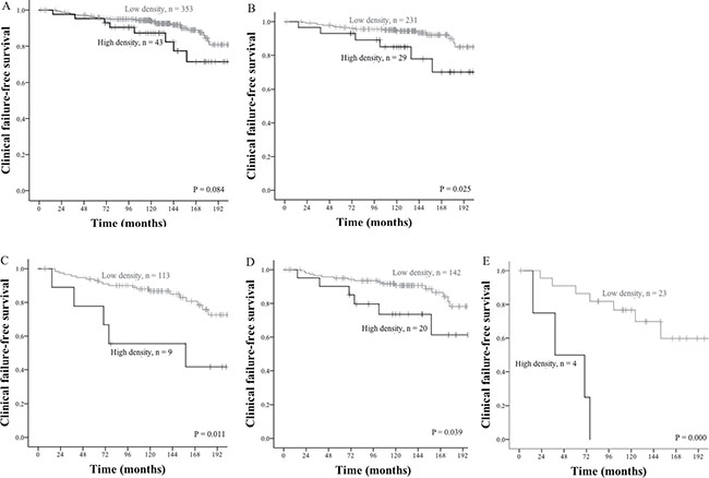 Detailed clinical and histopathological characteristics are presented in Table 1. Median age at surgery was 62 (range 47–75). The prostatectomies were retropubic in 435 cases and perineal in 100 cases. At the last follow-up in December 2015, 200 patients had experienced BF, 56 patients had CF, and 18 patients were dead of prostate cancer. Elaborate information on the cohort has been previously published [14].