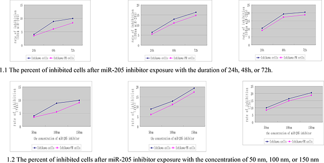 Table 2: The expression of miR-205 with miR-205 inhibitor between Ishikawa-PR cells and Ishikawa cells