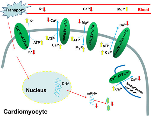 The assay kits (Nanjing Jiancheng Bioengineering Institute, China) were used to mensurate the activities of Na+-K+-ATPase, Ca2+-ATPase, Mg2+-ATPase and Ca2+-Mg2+-ATPase in heart tissue. And the determinations of these ATPases were independent of each other, which meant the test of one ATPase couldn’t be influenced by another.