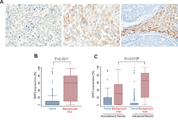 High SHP2 expression in non-neoplastic livers with advanced fibrosis