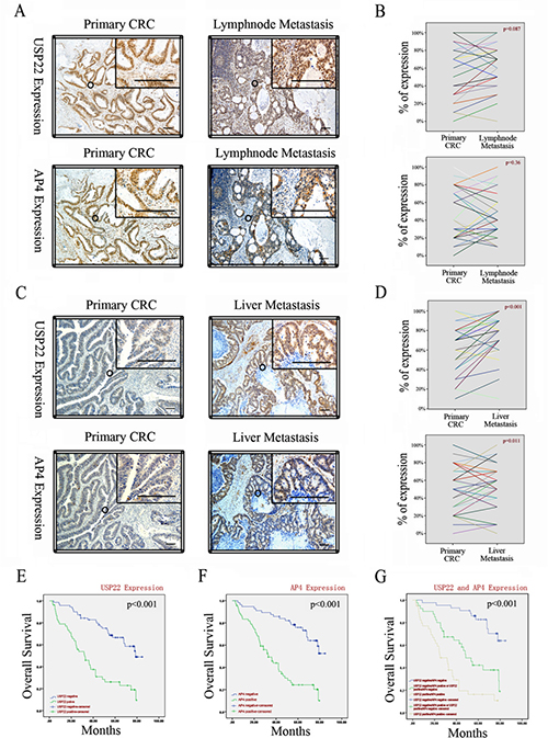 USP22 and AP4 overexpression is correlated with liver metastasis in CRC and poor outcomes in CRC patients