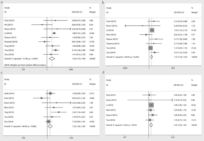 Abbreviations: LVI: lymphovascular invasion; OR: odds ratio; 95%CI: confidence interval; P: p value of pooled HR; I2: value of X2 based I-squared statistics; Ph: p value of Heterogeneity test.