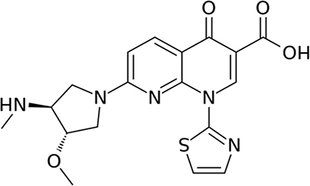 38. Evanchik MJ, Allen D, Yoburn JC, Silverman JA, Hoch U. Metabolism of (+)-1,4-dihydro-7-(trans-3-methoxy-4-methylamino-1-pyrrolidinyl)-4-oxo-1-(2-thiaz olyl)-1,8-naphthyridine-3-carboxylic acid (voreloxin; formerly SNS-595), a novel replication-dependent DNA-damaging agent. Drug Metab Dispos. 2009; 37:594–601. doi: 10.1124/dmd.108.023432.