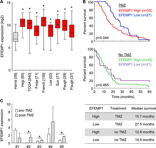 EFEMP1 expression correlates to TMZ treatment efficacy and survival in glioblastoma patients