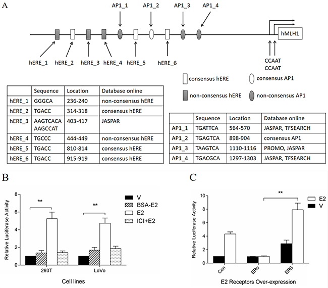 Half-EREs and AP1 binding sites are critical for the E2-induced MLH1 gene expression