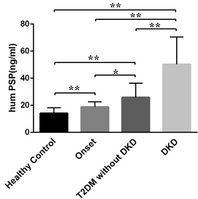 Significantly elevated PSP/reg levels were detected in DKD patients