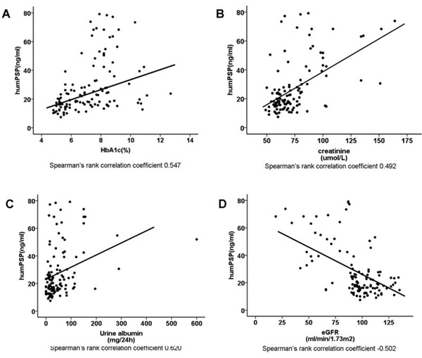 Serum PSP/reg levels correlated with HbA1c, eGFR, serum creatinine, urinary albumin, and blood pressure