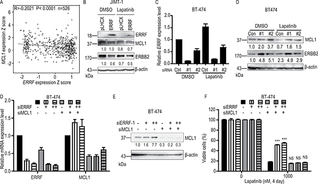 ERBB2 and MCL1 appear to mediate ERRF’s effect on lapatinib sensitivity