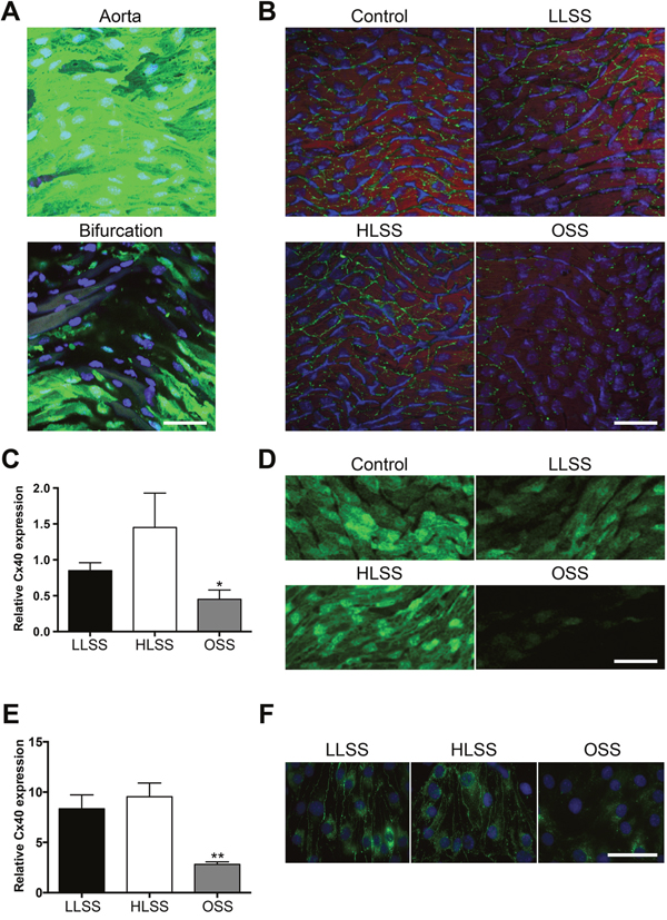 Effect of shear stress on in vivo and in vitro Cx40 expression