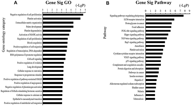 Figure 3: Functional analysis for the commonly differentially expressed mRNAs in drug resistance of lung cancer. GO analysis and KEGG pathways of the commonly differentially expressed mRNAs.