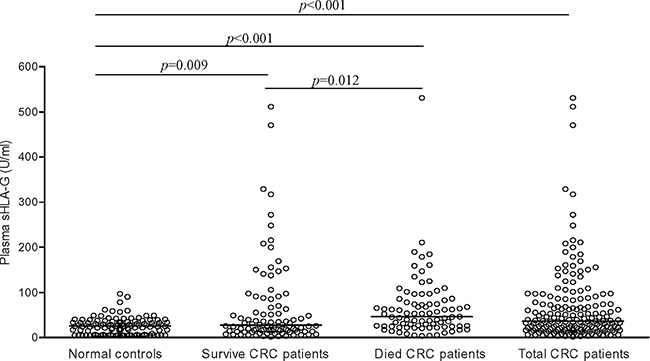 Plasma sHLA-G levels in CRC patients