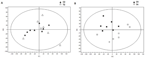 Statistical comparisons were performed using the SPSS software (version 19.0). The Ion features of Triple Q TOF were arranged by Markerview workstation (AB SCIEX, USA). The principal component analysis (PCA) was performed by the SIMCA-P software (version11.0, Umetrics, Umea, Sweden). Hot map was obtained by MeV version 4.5.1software.