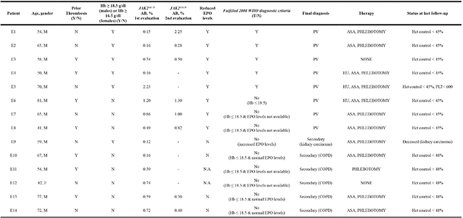 Table 2: Main baseline characteristics and clinical outcome of patients investigated for erythrocytosis